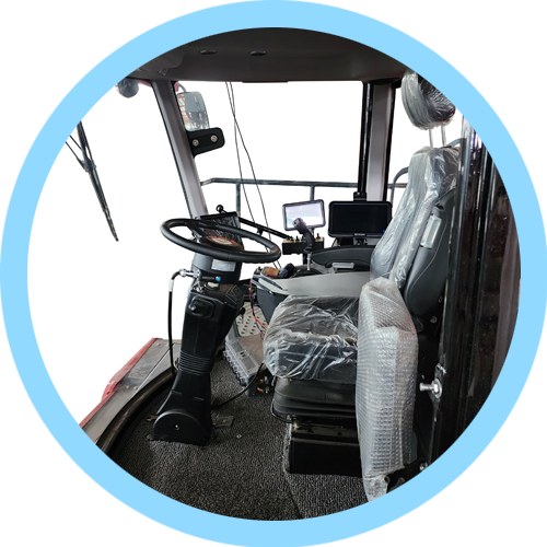 整車全部功能都可以在扶手箱電控按鍵進(jìn)行操作。 增壓駕駛室寬敞明亮,保護(hù)駕駛員安全。配備豪華氣動(dòng)懸浮座椅,副駕駛位。 智能車載系統(tǒng)可以清晰顯示油溫水溫轉(zhuǎn)速等基本信息并且搭配進(jìn)口智能噴霧系統(tǒng)。
